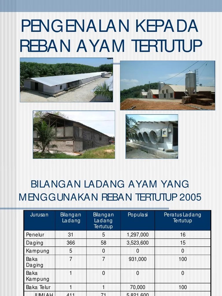 •dalam tahun 2004 hanya 30 ladang ayam menggunakan reban.